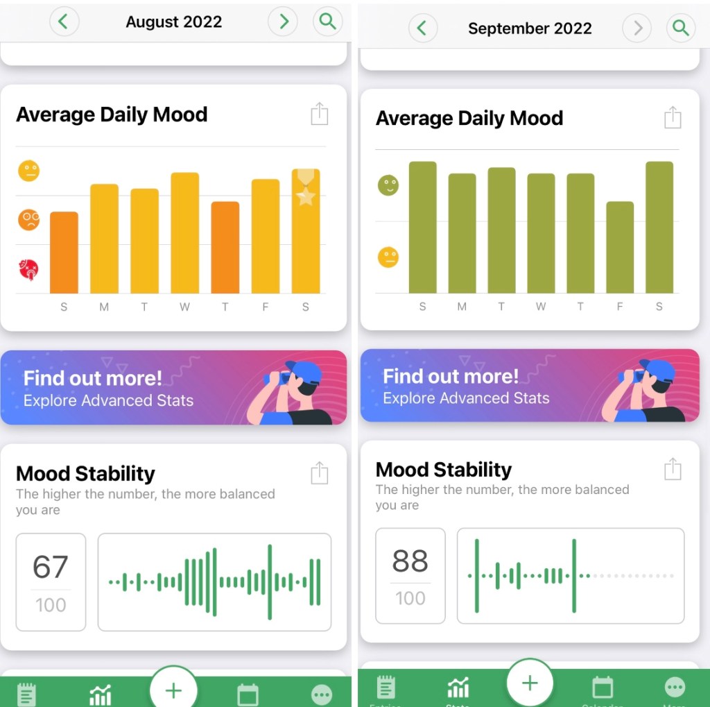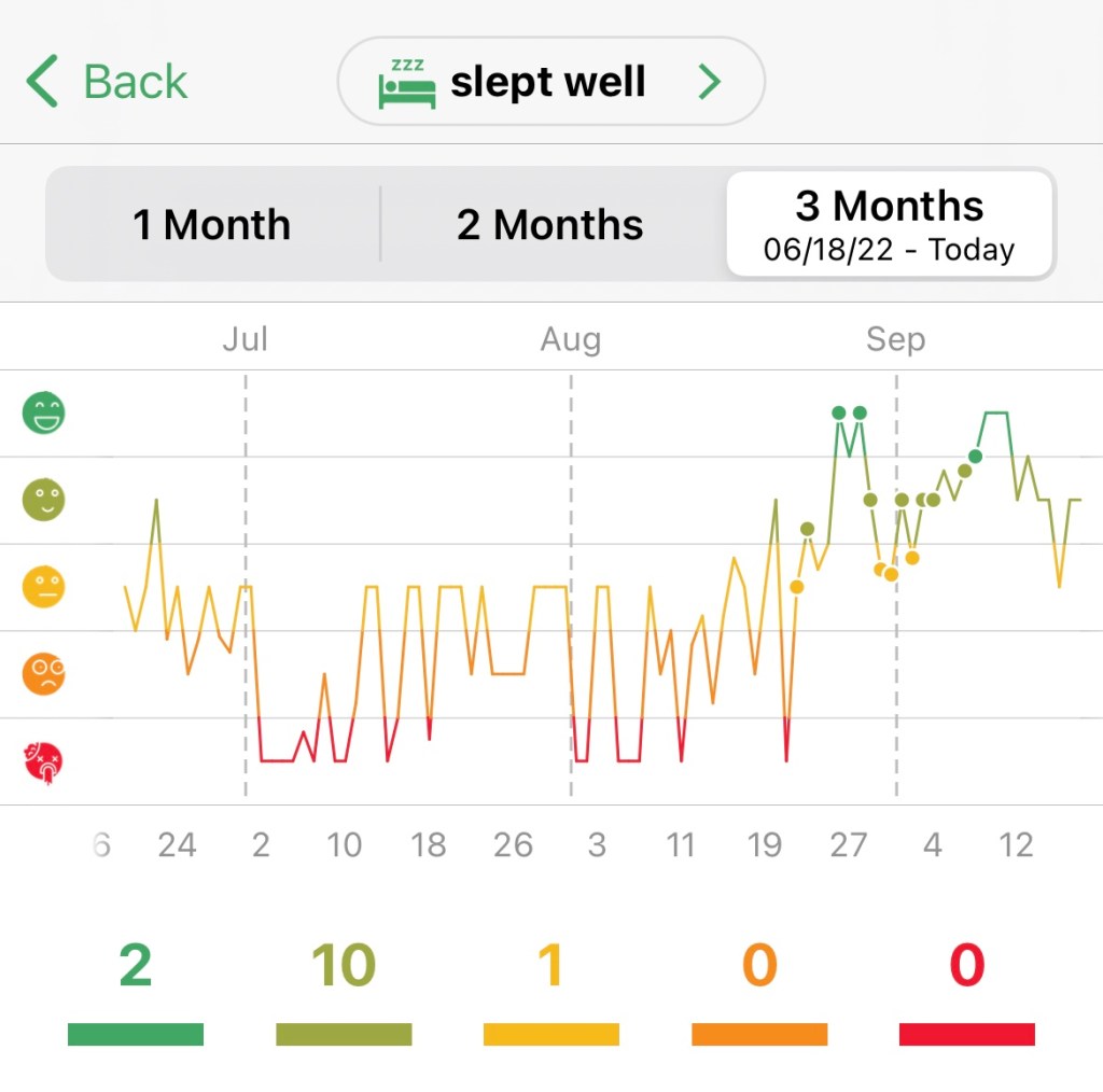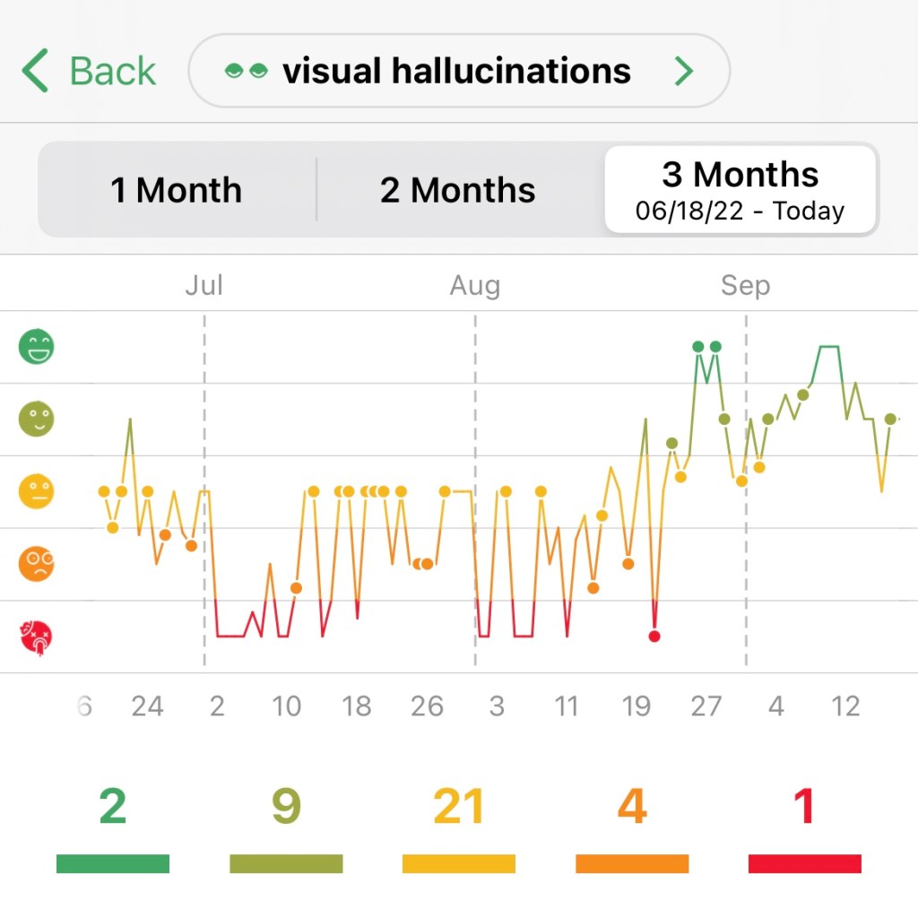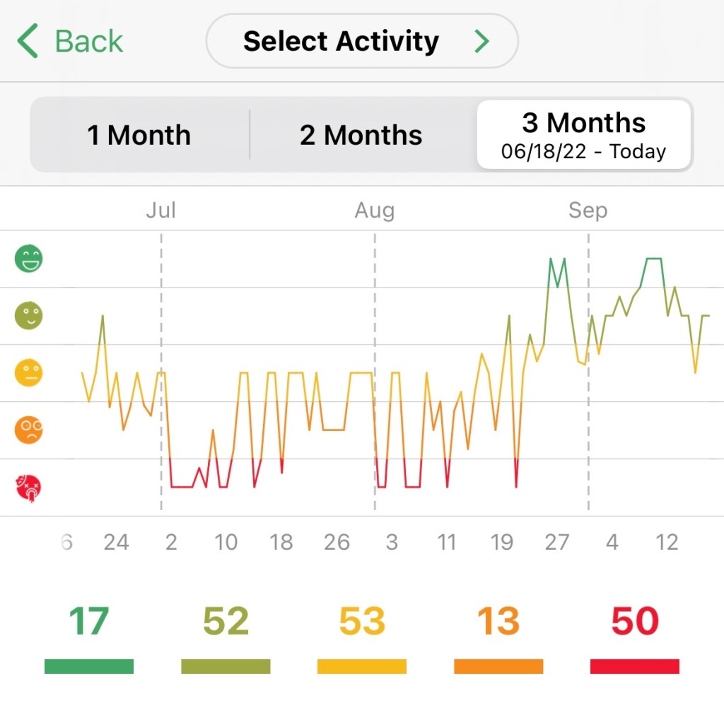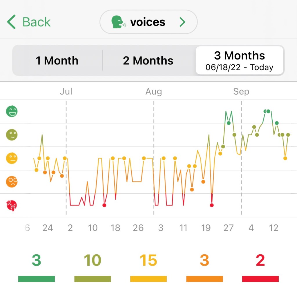 The graphs that the app can create show a distinct change in my mood the days after getting onto Invega.